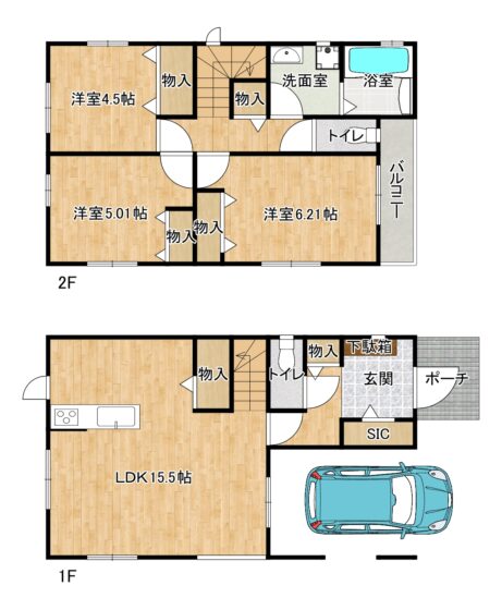 | 間取内容 | LDK15.5帖 1階 1室洋室6.21帖 1階 1室洋室5.01帖 1階 1室洋室4.5帖 1階 1室 | ||