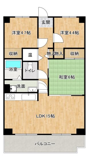 間取内容 | LDK15帖 1室和室6帖 1室洋室4.7帖 1室洋室4.4帖 1室 | ||
